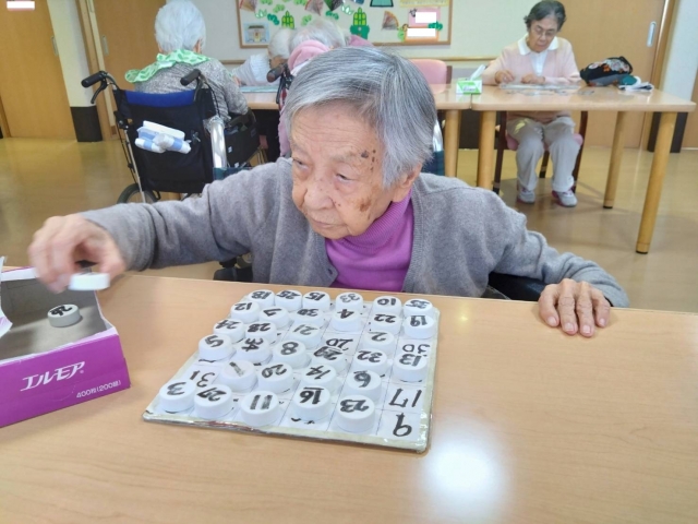 日常レクリエーション(数字合わせ・牛乳パックジェンガ)