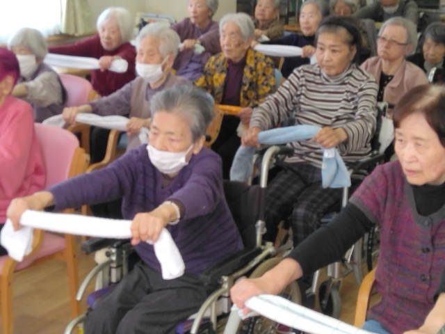 介護付き有料老人ホーム「アミカの郷流山」タオル体操♪