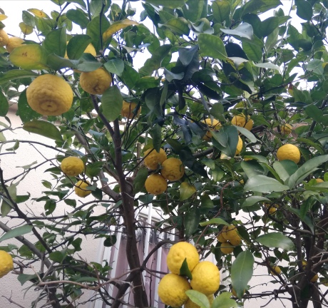 庭の柚の木が色づいてきました!柚湯の季節になりました!