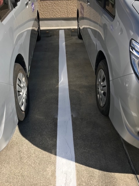 駐車場の白線が、、、消えてる。きれいにしてみました
