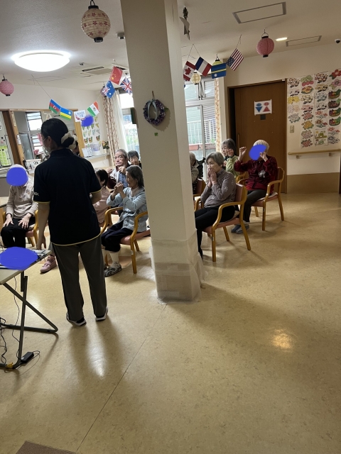 1F・風船バレー・レク【グループホームみんなの家・新川崎介護ブログ】