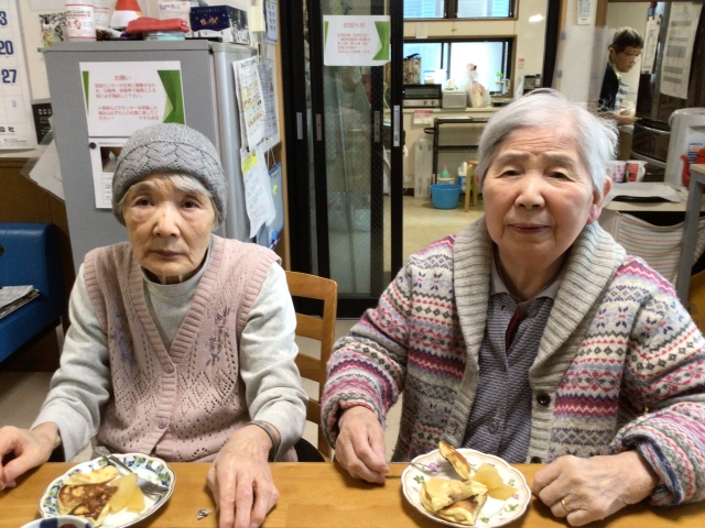 1/28 おやつは牛乳プリン ホーム長の試作品!ケアリーダーがお菓子を添えてくれました!