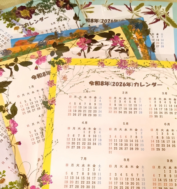 花束のような色彩の押し花カレンダーを頂きました(´∀`*) 岩槻本町