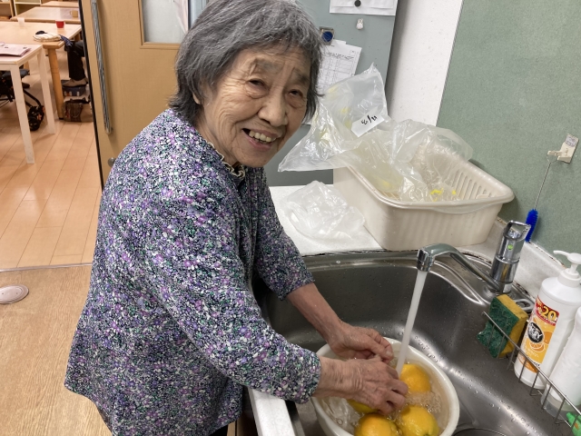 お手伝い~レモン洗い~&体操のお時間+美声を響かせて(*´з`)