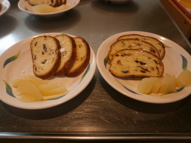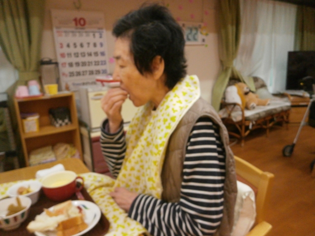 10/17 おやつレクでパンを食べました。職員が焼いたシュトーレンに果物を盛り付けて頂きました。皆さん、パンは大好きです。美味しくておかわりしてました。