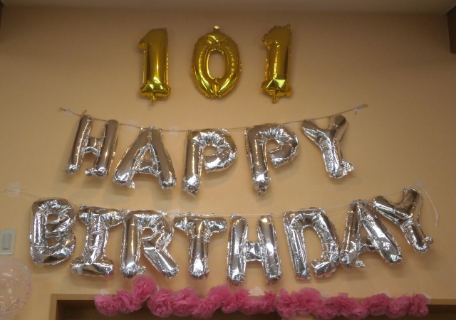 101歳おめでとうございます!うちのホームでの最年長様です!みんなでお祝い出来てなによりです!