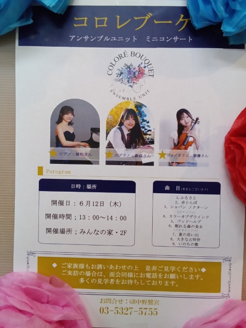 グループホームみんなの家・中野鷺宮で「コロレブーケ」さんのミニコンサート(1/2)
