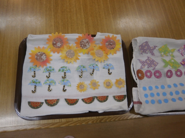 リモート体操の盆踊りに向けて提灯をつくりました。皆様、好きなものを張り付け出来上がりました。②