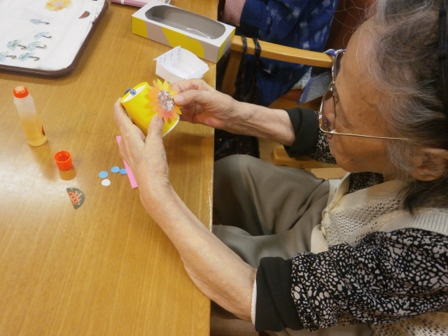 8/20 風鈴作りレク 紙コップで風鈴つくり!どうかな?かわいいでしょ?その1