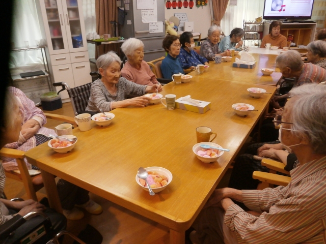 納涼祭その①10時に大きなスイカを皆さんで食べました!甘くて美味しかったですね☆☆