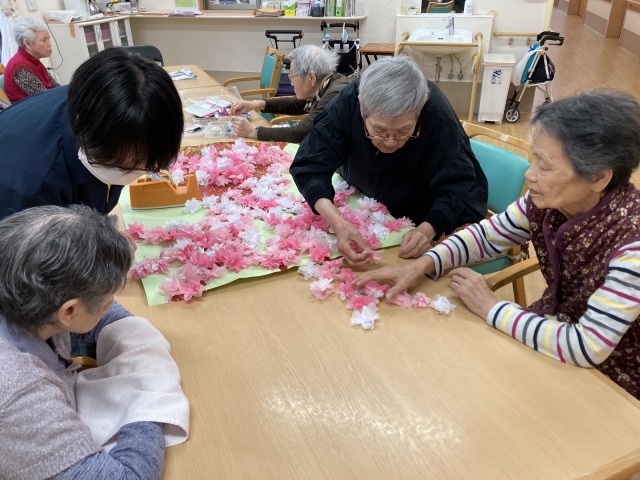4月の壁画作りは桜の木です