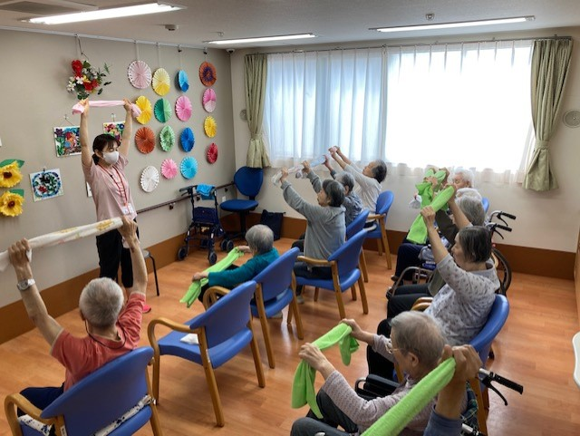 グループホームみんなの家・墨田で「スポーツの日にタオル体操」