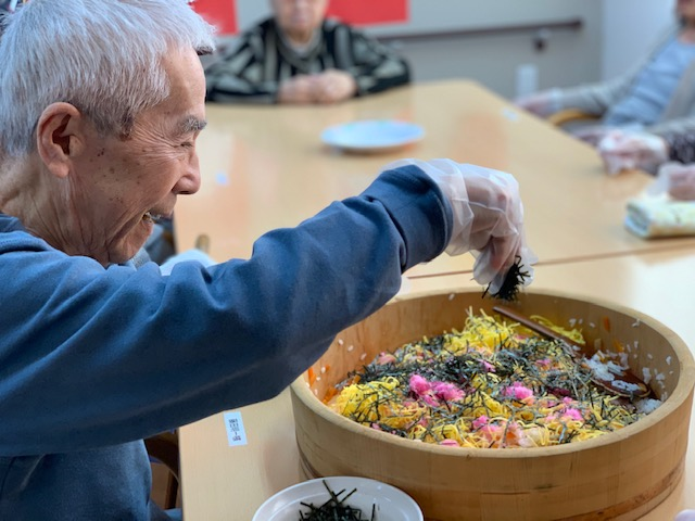 グループホームみんなの家・墨田 2Fの「桃の節句」でちらし寿司