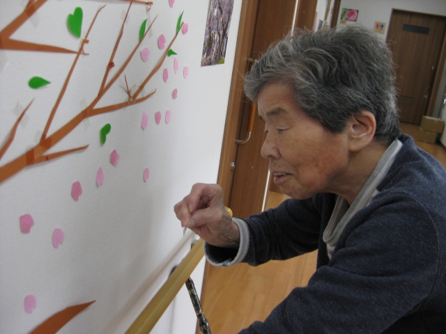 壁に貼った桜の花をはがしてくださっているご様子☆