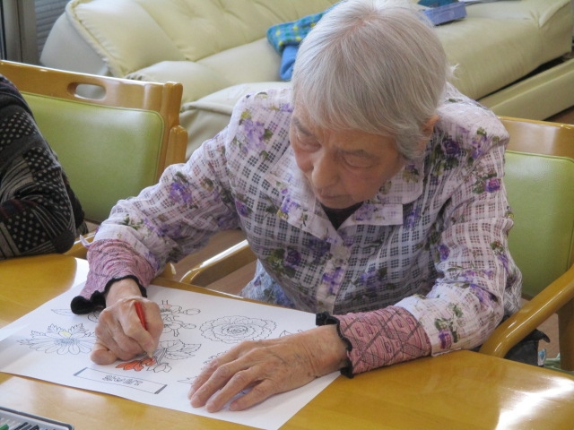 1階・2月の催し物の塗り絵のご様子です☆