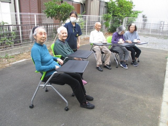 お庭での茶飲み会☆