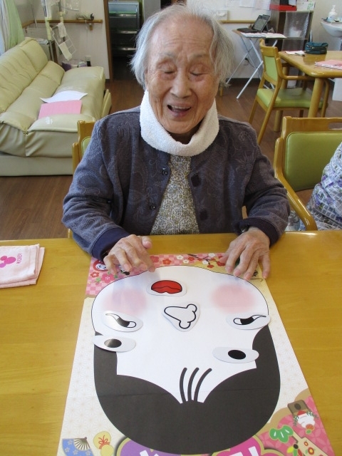 2階・お正月遊び(福笑い)を行っているご様子です☆