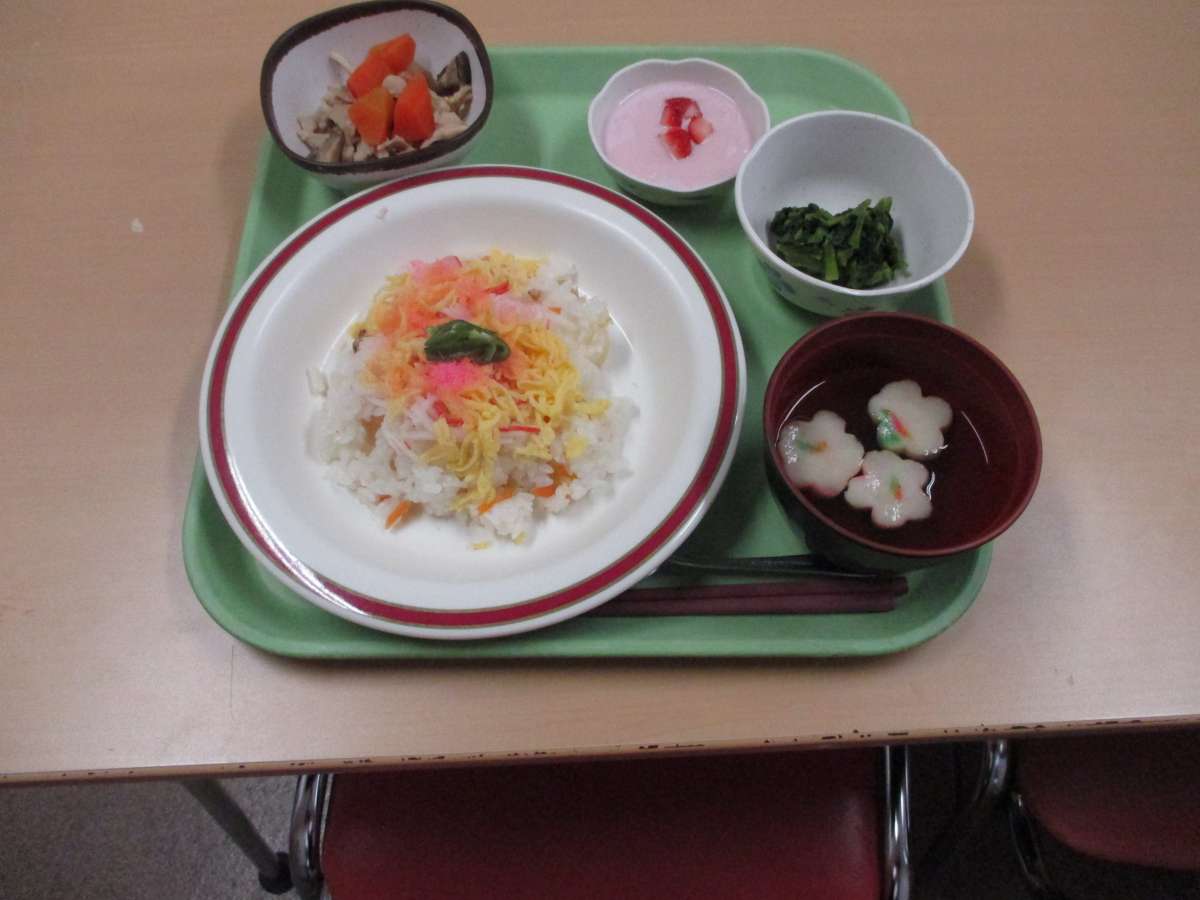 本日の昼食、ひなまつりメニュー♪