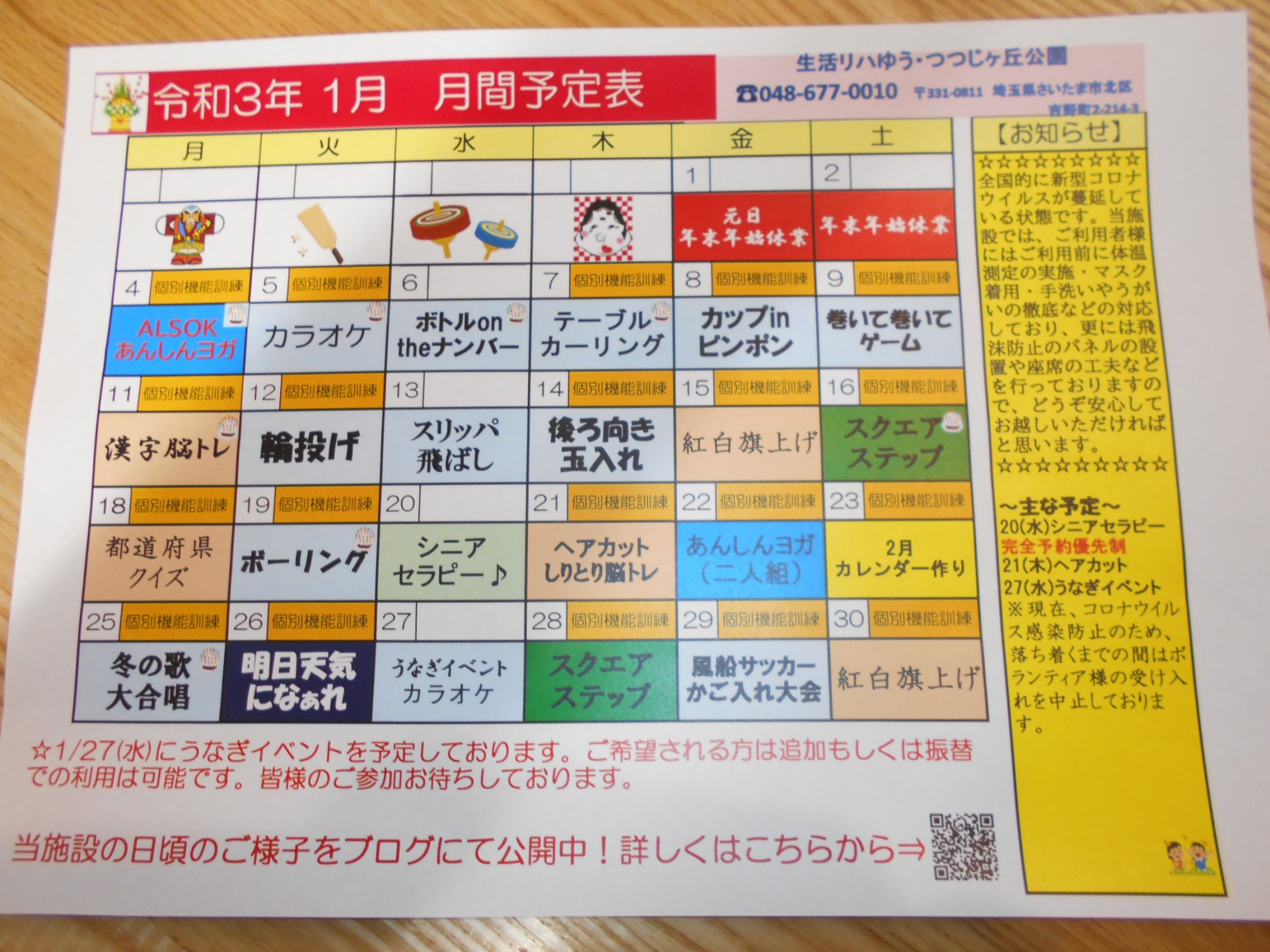 1月のレクリエーションカレンダー