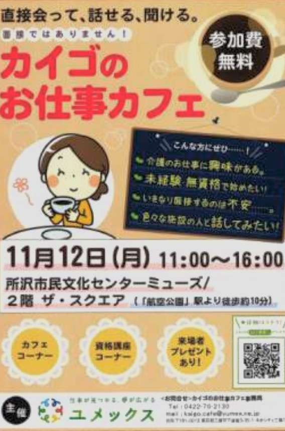 11/12(月)11時〜16時カイゴのお仕事カフェ本日開催‼️
