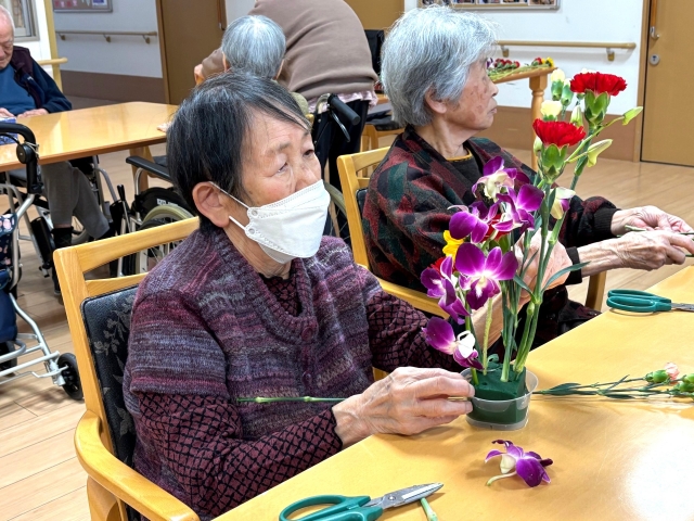みんなの家・南中丸では花好きの職員が多くいつも季節の花々が飾られており、お食事や休憩時などお花を楽しみながらお過ごしいただけます。