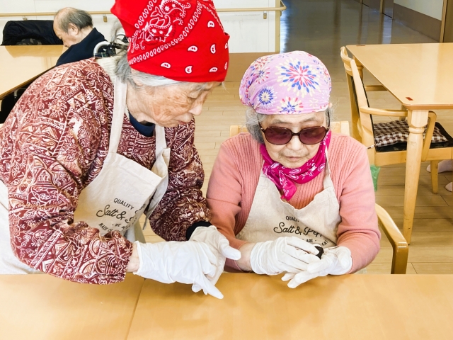 ホームでは季節イベントやレクリエーションなど、職員たちが企画して皆さんに楽しい時間を提供しております。今回は200個を超える手作り餃子を作りノンアルコールをお供に出来立てを楽しみました!