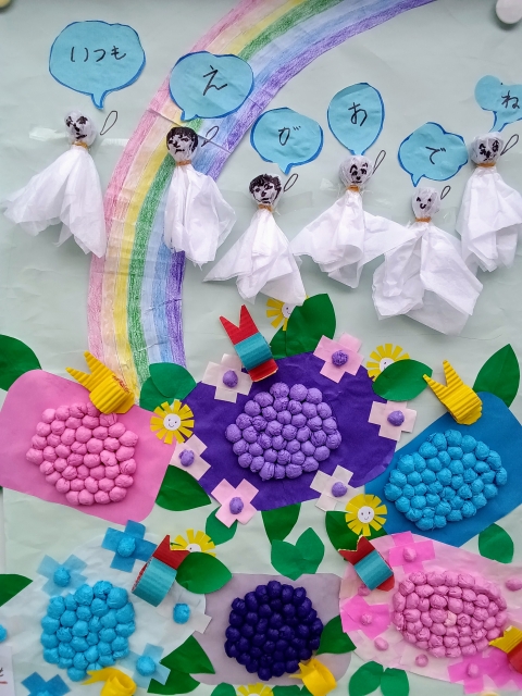 各ユニットの壁には季節にあった壁面飾りがあります。季節に合わせた装飾をひとつずつ手作りして、飾ります。きれいな壁面飾りをぜひご覧ください!