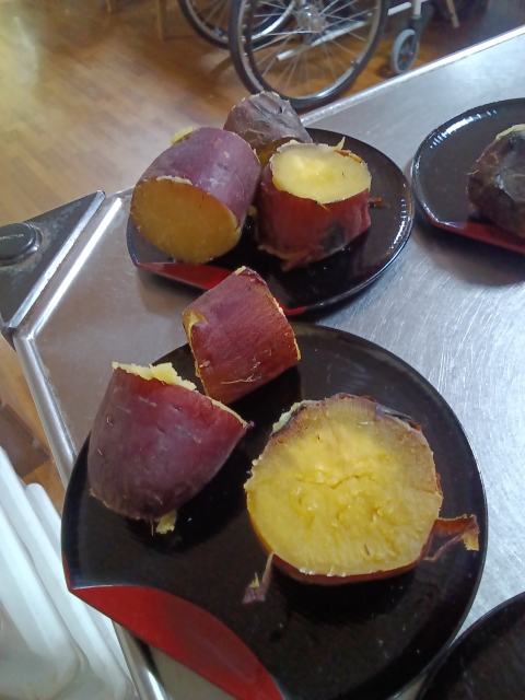 ジャガイモやショウガ、里芋、サツマイモなど収穫した野菜は皆さんのお食事やおやつでご提供しています。