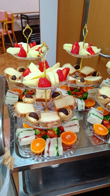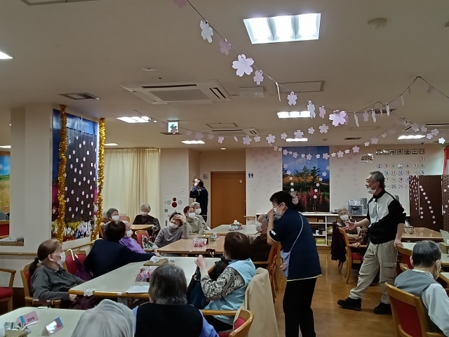 ボランティア様を招いてフラダンス、チアリーダー、リサイタルを行ったりお茶会、アフタヌーンティーなど職員がおもてなししたり、イベントに力を入れているデイサービスです。多くの方に好評いただいております。カラオケルームや機能訓練など設備が充実しており広々とした一般浴室、また寝台浴も完備しているので介護度に関係なく毎日ご入浴いただけます。