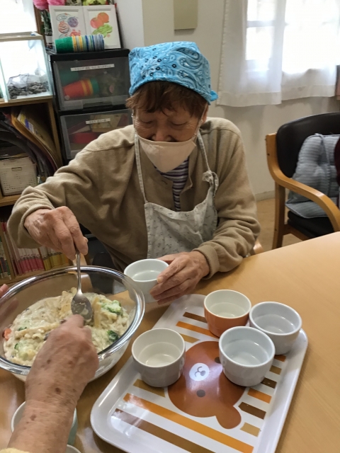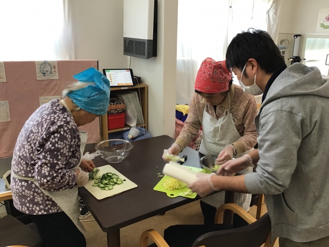 例えば、皆様で昼食作りの準備や片付けをするなど、お互いにできることを協力し、認め合い、ご利用者様はいろいろな作業を通して『まだまだできる自分』を発見しています。