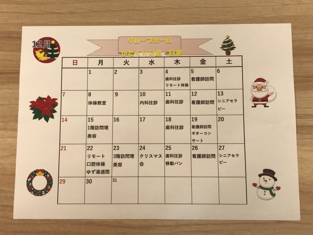 思いやりと温もりのある空間で、料理や掃除、洗濯などを中心に、散歩、歌唱、体操の他、季節の行事を通じて、皆様にほっとしていただける時間を提供いたします。