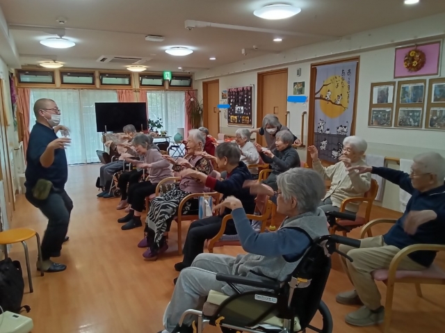 定員18名(各ユニット9名)のご利用者様が日々のレクリエーションを通じて活動的に過ごされていらっしゃいます。