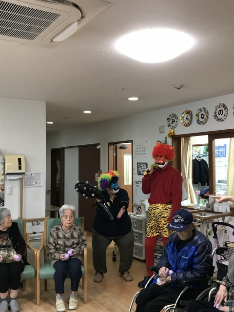 車いすの方も座ったまま安全にできる体操は毎日行い、スタッフとの会話や普段意識しない筋肉を動かすことで皆さまの健康をサポートします。