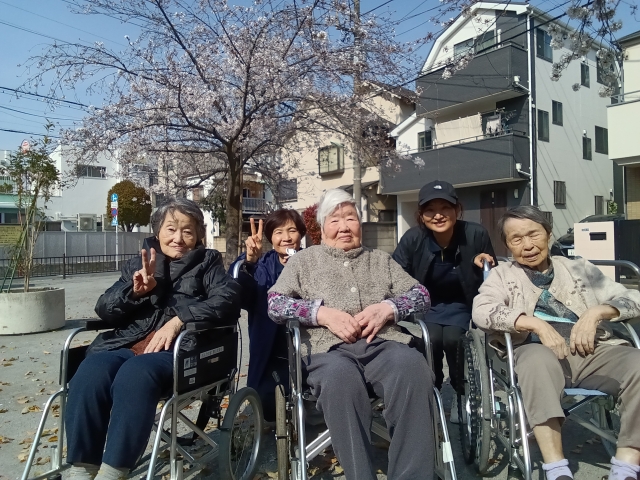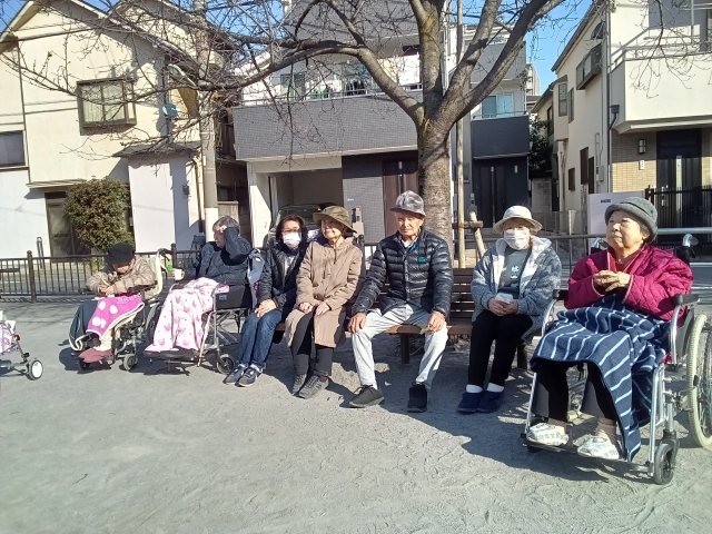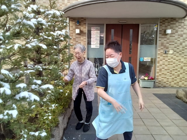 近所には公園や神社など多数あり、天気の良い日はケアスタッフと一緒に散歩に出掛けます。