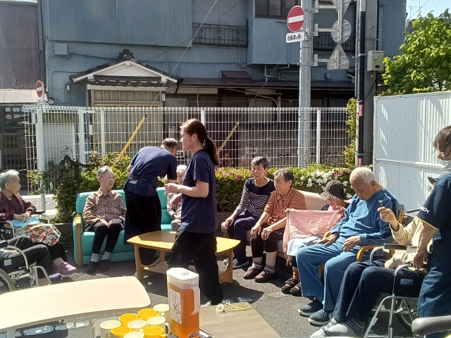 ホーム自慢の庭では家庭菜園や流しそうめんを実施しています。