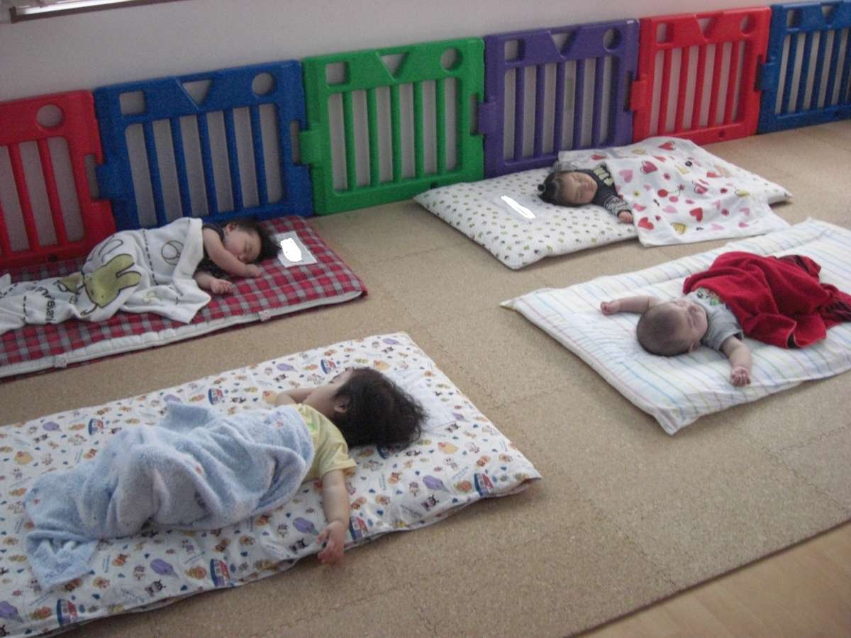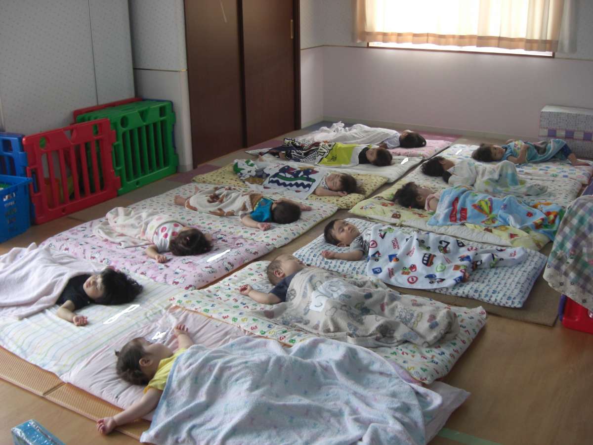 給食をお腹いっぱい食べて、ぐっすり眠る こどもたちの様子です。