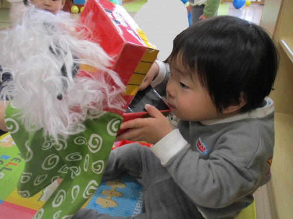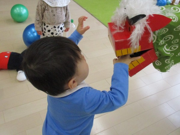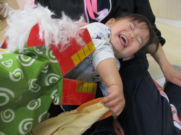 自分からミニ獅子舞に手を伸ばして関わる様子が見られました。