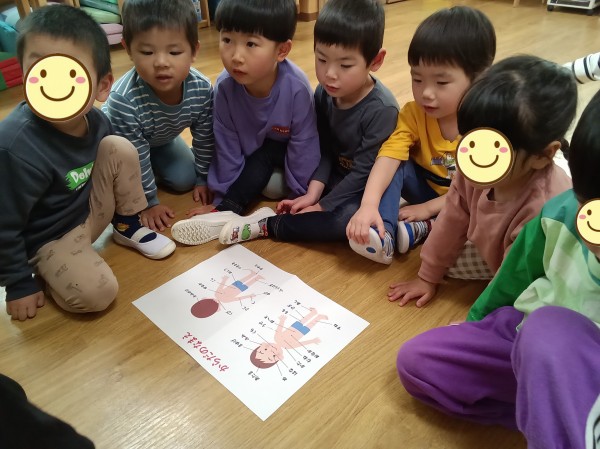 3歳児クラスのぱんだ組に、健康教育「からだのなまえ」を行いました。