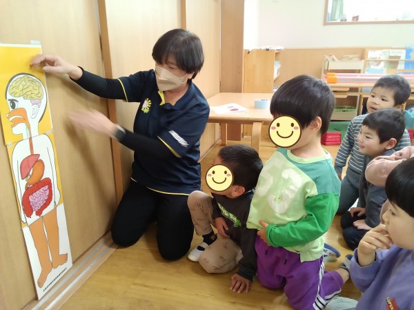 次回4・5歳クラスの健康教育では、内臓の名前や簡単な役割も伝えていきたいと考えています。