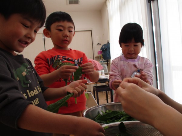 前日からやることを伝えると「今日ほうれん草やるよね⁉」と嬉しそうに登園してくる友だちがいました。