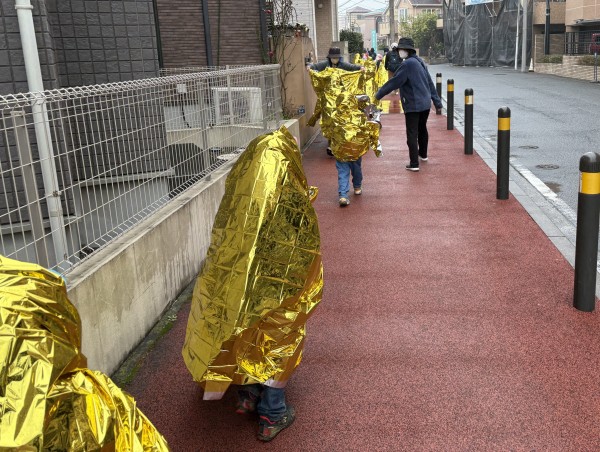 小雨の降る中、自助バッグに入っている災害時用アルミシートを被って行徳駅まで30分掛けて歩きました。