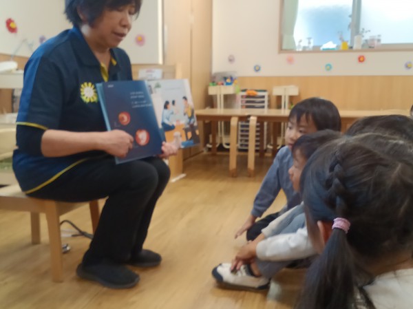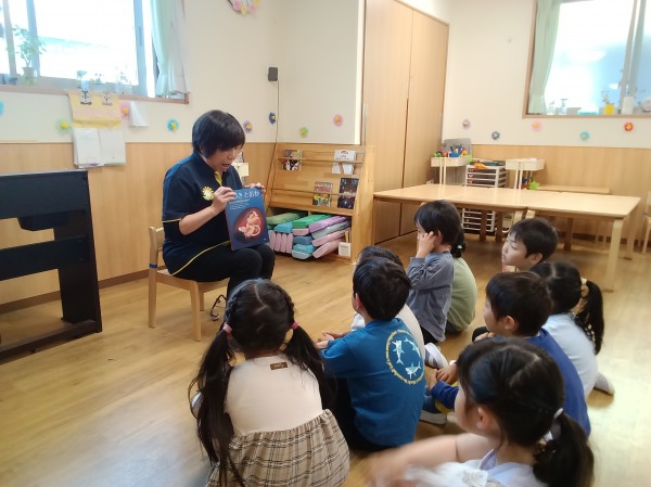 絵本の中でどんどん大きくなっていく赤ちゃんを見守っていた子どもたちは、赤ちゃんが誕生した場面では、歓声を上げて喜んでいました。