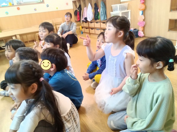 お母さんのお腹の中で育って、生まれてからこれまでご両親に大切に育ててもらったから、みんなの心臓は今元気に動いていることを話しました。「心臓が止まったらどうなるの?」という質問には、「心臓は酸素や栄養を体に送っているから、動かなくなったら体全部が動かなくなって死んじゃうんだよ。だから、みんなの心臓だけではなく、お友だちの心臓も大切にしないといけないね!」と締めくくって、卒園児への贈る言葉にしました。
