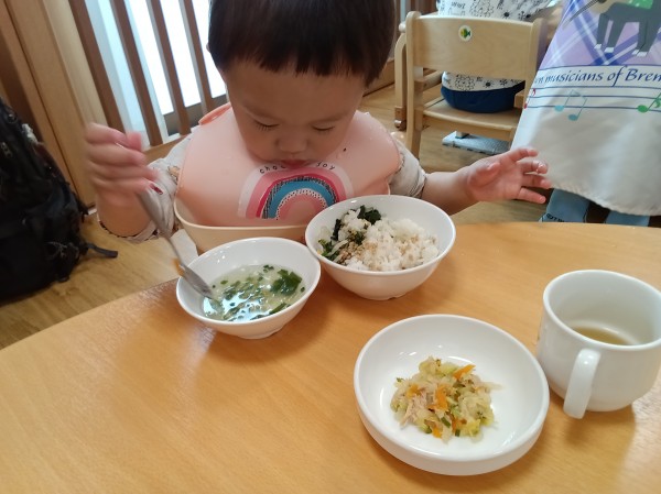 新入園のお友だちと、初めて一緒にご飯を食べました。