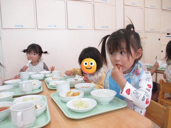 こちらは2歳児クラスの子ども達‥こちらもパクパク食べています!