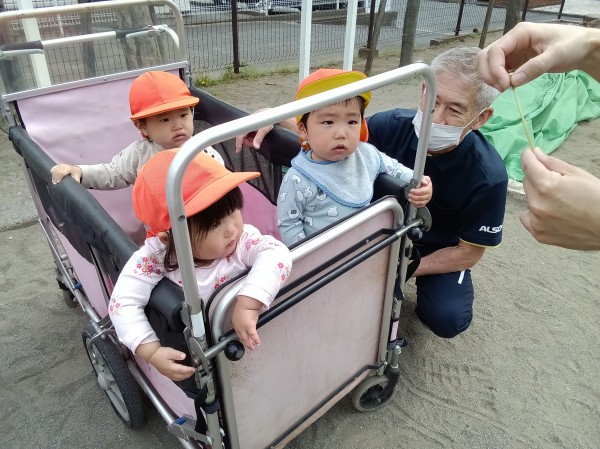 今回は1歳児りす組のお散歩先での様子をお伝え致します。