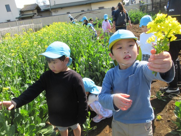今回は、5歳児ぞう組の菜の花摘みの様子をお伝え致します。