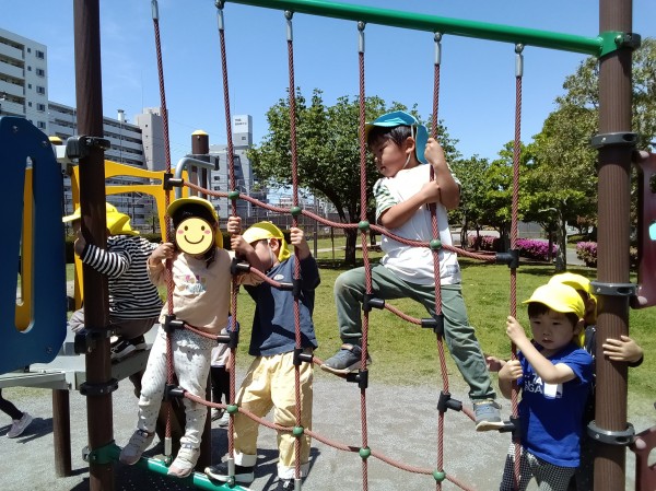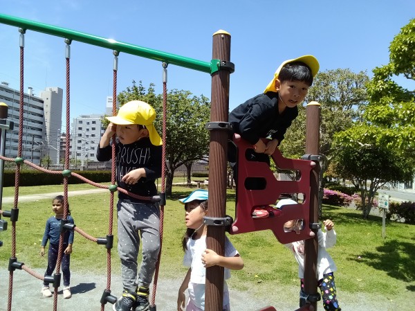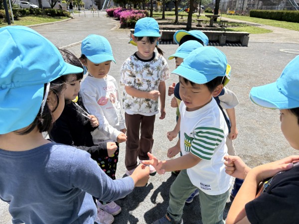 公園に行って、4歳と5歳の異年齢で遊びました。