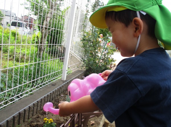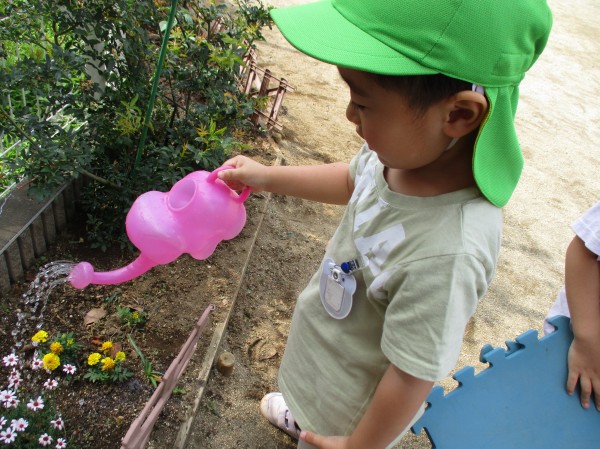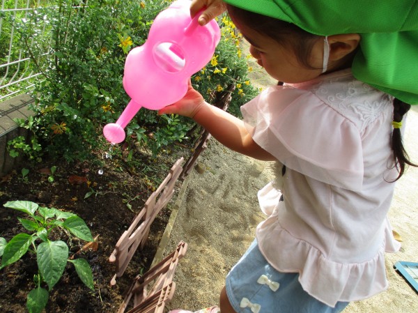 水やりが毎日の日課になっている子どもたち。ピーマンだけでなく、周りのお花にもお水をあげます。✾