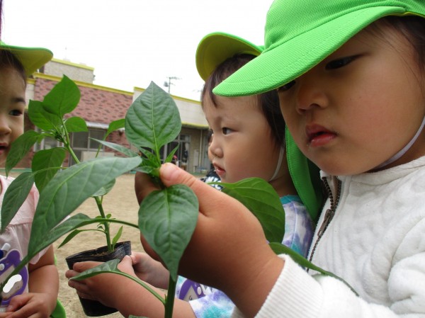 こどもの家・志木中宗岡 ピーマンの苗を植えました♪(ぺんぎん組)